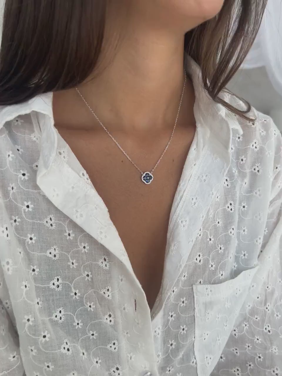 Colier din argint 925 pandantiv trifoi cu spinel si diamante CZ