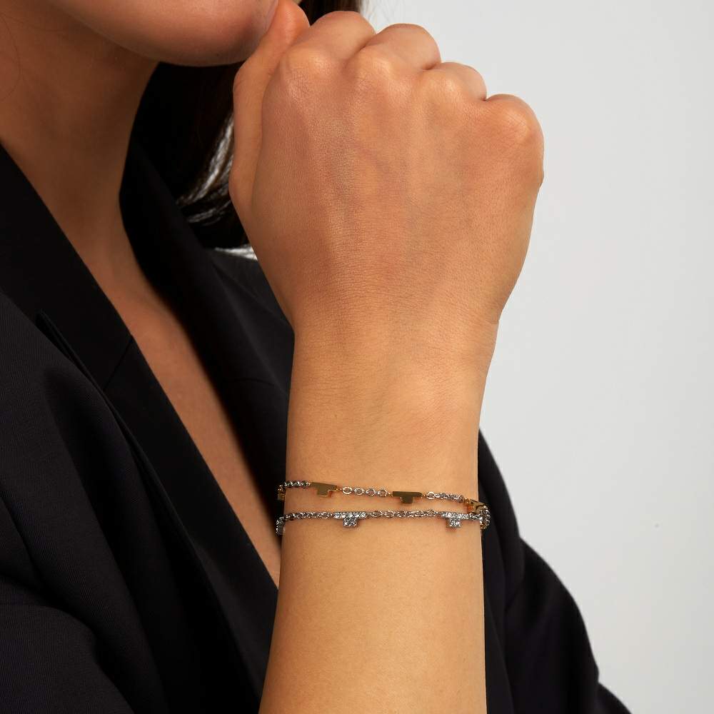 Bratara de Dama Trussardi cu T Logo Aurii si Argintii
