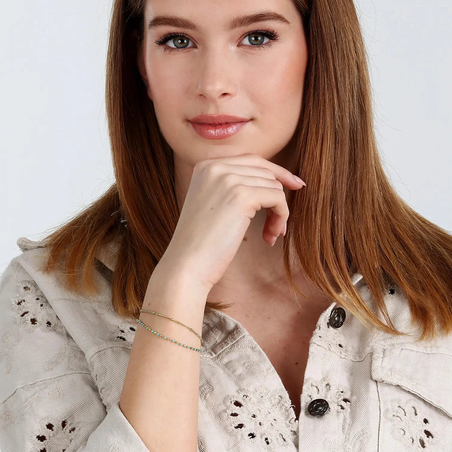 Bratara dubla aurie cu turcoaze La Petite Story