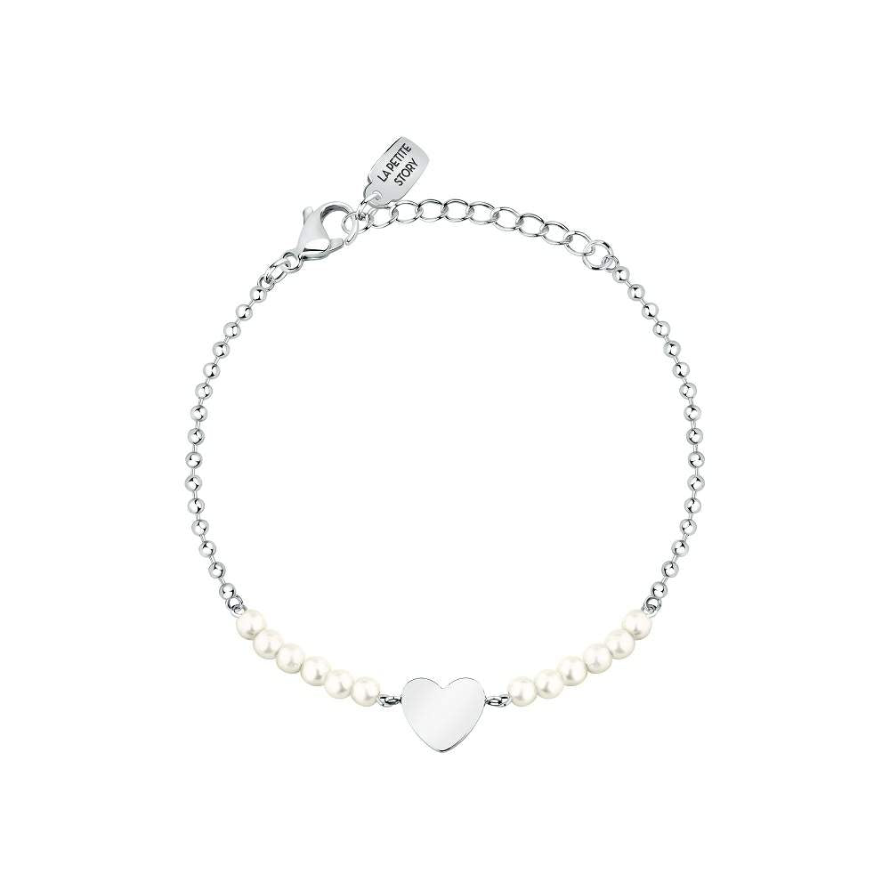 Bratara La Petite Story din otel inoxidabil 316L argintiu cu perle de cultura si inima