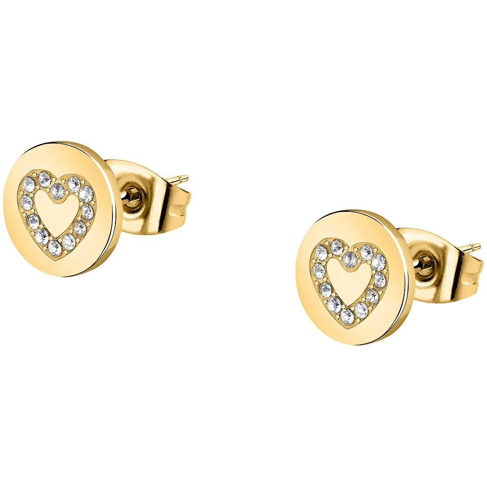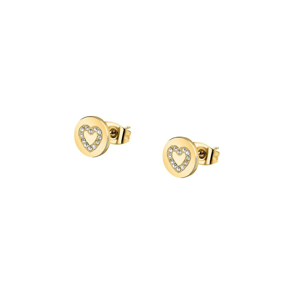 Cercei La Petite Story din Otel Inoxidabil Aurii cu Inimi din Diamante CZ