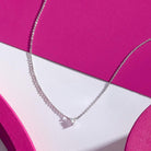 Un colier care surprinde prin simplitatea detaliului. Realizat din argint 925 rodiat, modelul poarta un pandantiv in forma de inima, decorat cu un diamant CZ taietura heart cut, claritate AAAAA, total 0,02 ct.