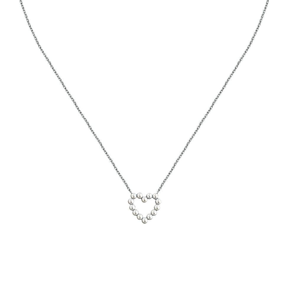 Colier La Petite Story din argint 925 rodiat cu perle de cultura si pandantiv inima