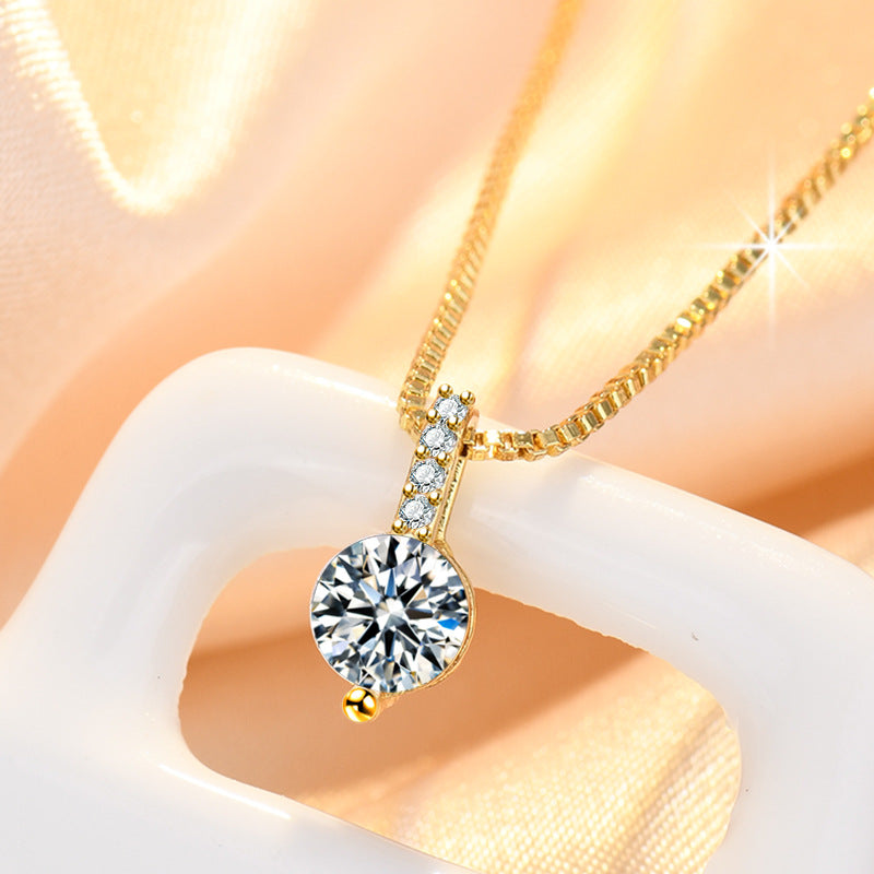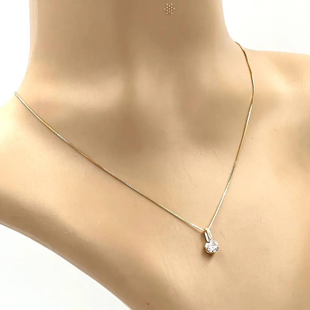 Colierul Punto Luce auriu este definit de simplitate si echilibru: un lant fin din argint 925 rodiat si o piatra centrala de 0,4 carate, cu claritate AAAAA, care prinde lumina la fiecare miscare.