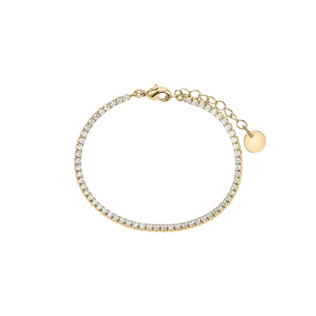 Brățara Tennis din argint 925 rodiat auriu, cu diamante CZ albe de 2 mm, 0,2 carate, claritate AAAAA, combină designul precis cu un finisaj sofisticat. Este adaptabilă datorită extensiei de 4 cm, oferind potrivirea exactă pentru încheietura ta.