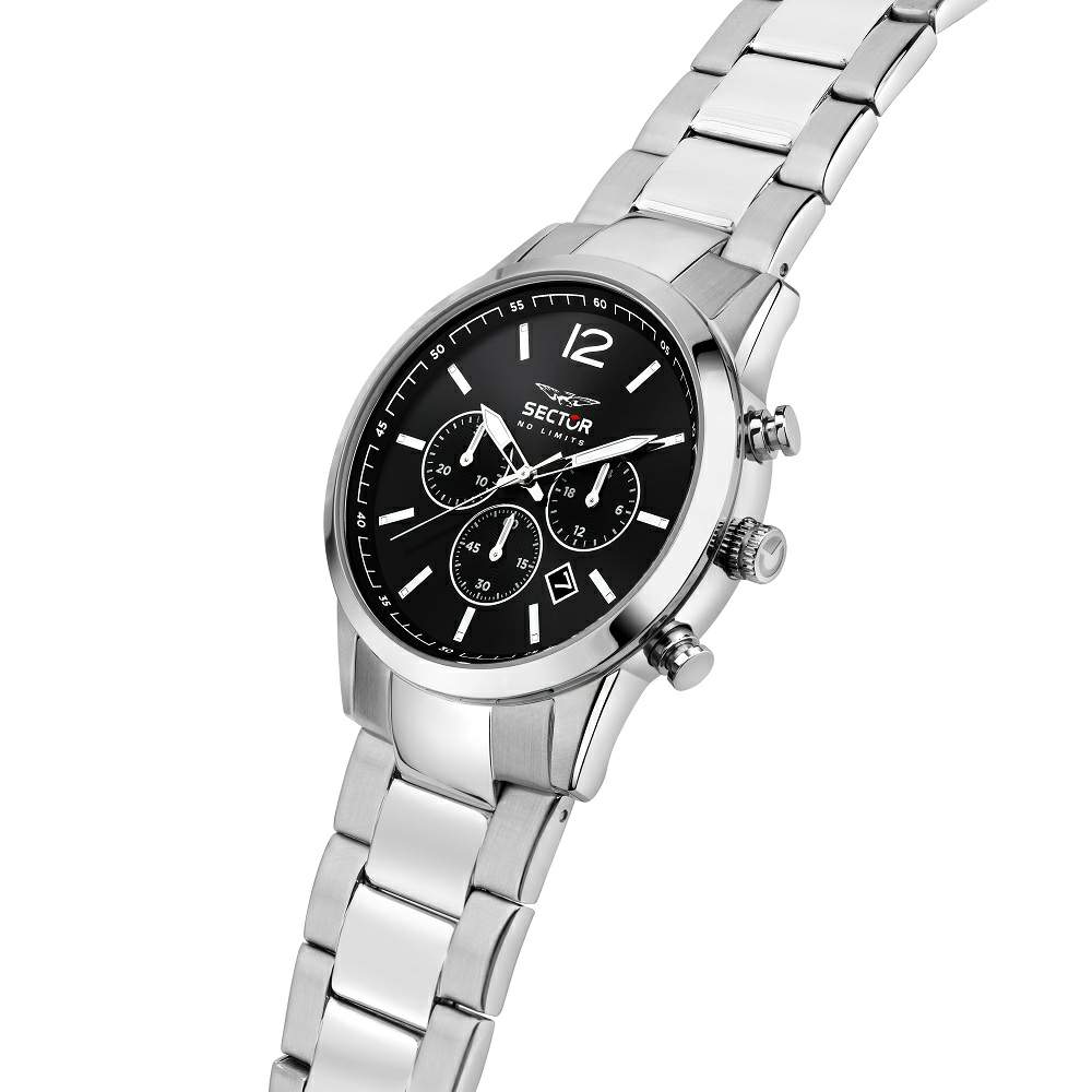 Ceas Barbati Sector 660 Cronograf Curea Metalica Argintie si Cadran Negru