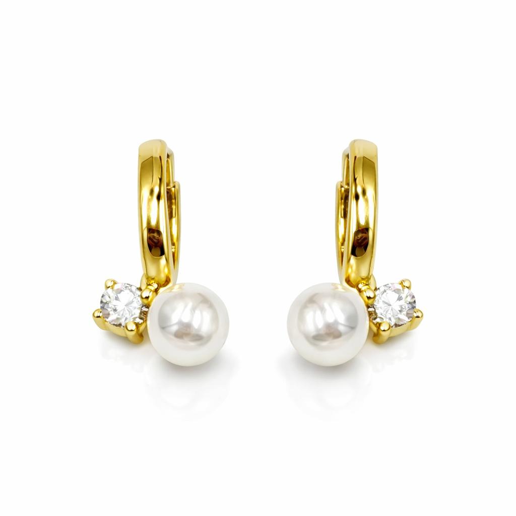 Cercei cu Perla de Cultura si Diamant CZ Punto Luce