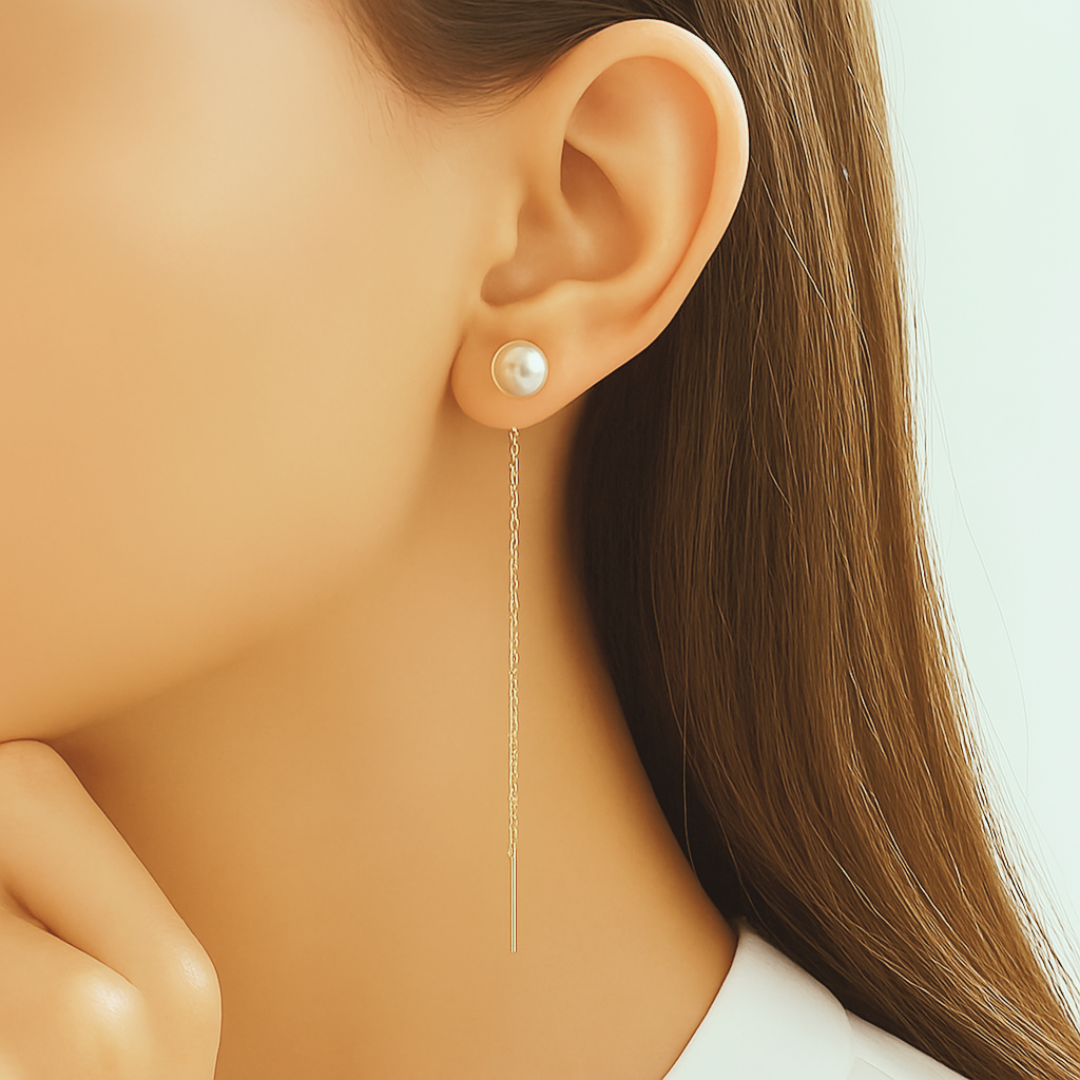 Cercei Threader „Pearl Essence” – Otel Inoxidabil 316L Placat cu Rodiu Auriu si Perle de Cultura