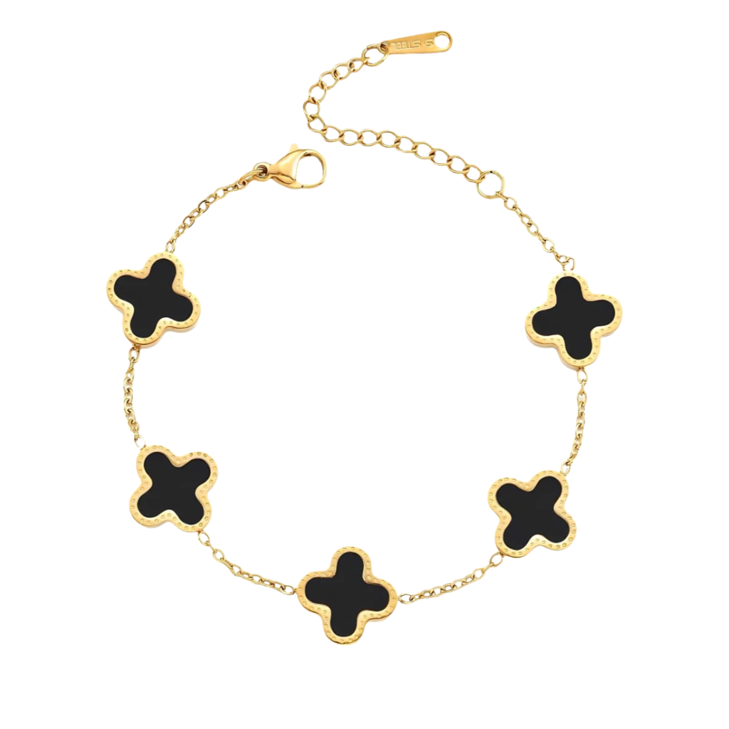 Brățară din Argint 925 Aurie cu Onix Negru "Black Clover"