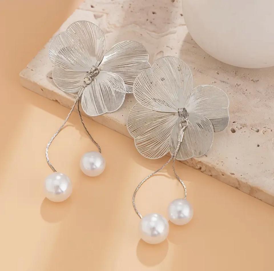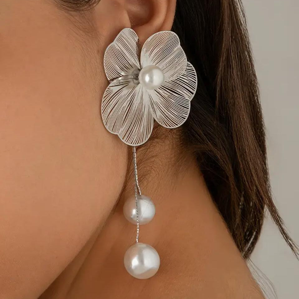 Descopera eleganta atemporala a cerceilor Silver Bloom! Acesti cercei lungi, cu design floral sofisticat, sunt realizati dintr-o floare argintie cu perla centrala, de la care se prelungesc cu fire care au perle la capete. Ideali pentru femeile care apreciaza bijuteriile elegante si rafinate.