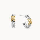 Cerceii Titan Golden Knot imbina eleganta minimalista cu forta materialului – titan placat cu aur 18K. Cu diametru de 1,3 cm si inchidere sigura cu surub, sunt creati pentru a fi purtati zi de zi, fara compromis intre stil si confort.