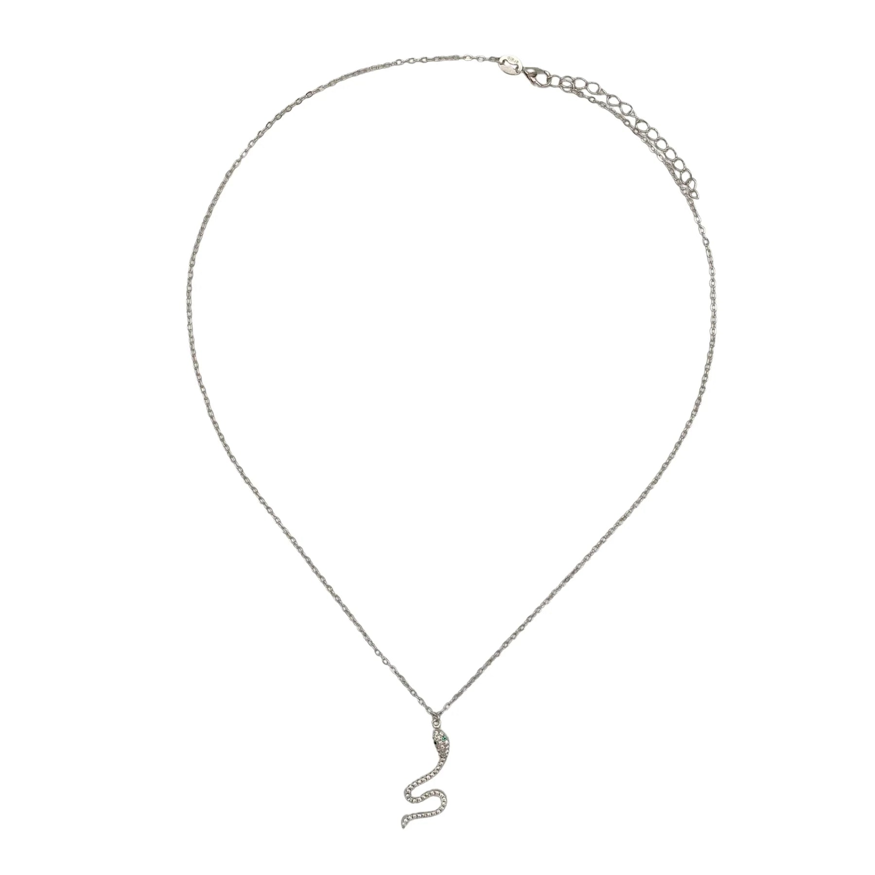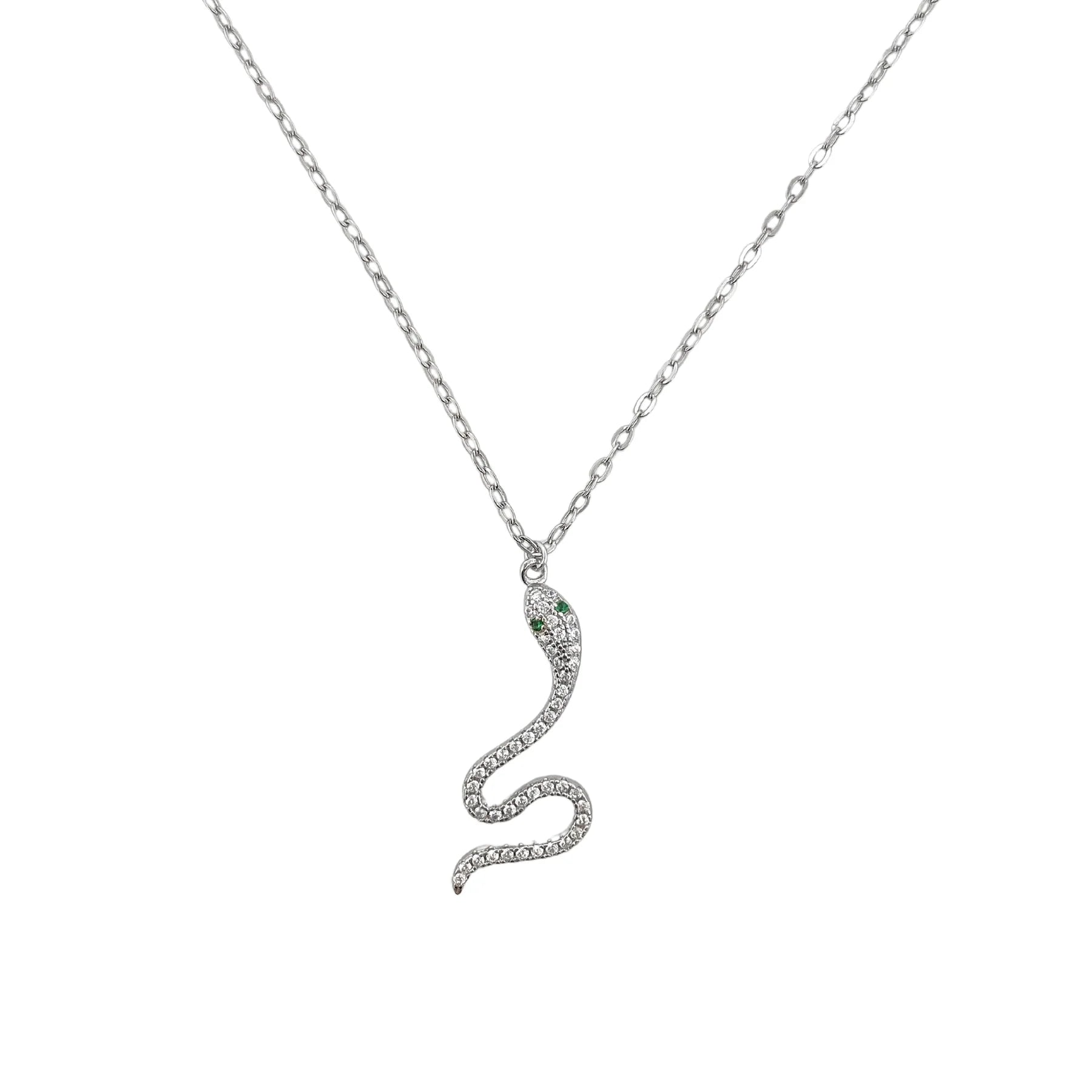 Colier Argint 925 cu Pandantiv Sarpe Diamante si Smaralde CZ