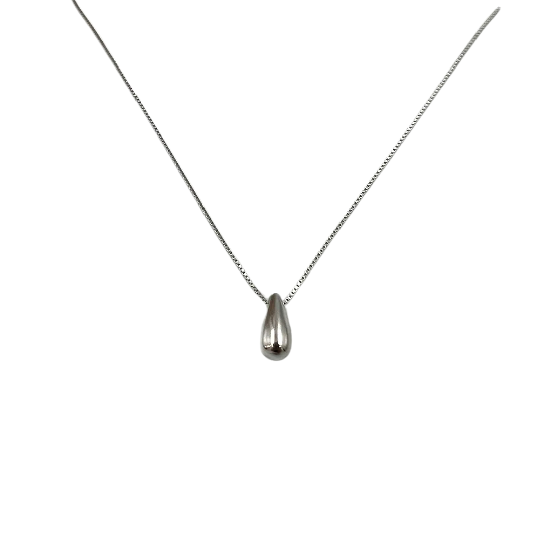 Acest colier din argint 925 rodiat cucereste prin simplitatea sa sculpturala — un pandantiv lacrima (Silver Drop) cu linii netede si finisaj oglinda, suspendat pe un lant catena veneziana ce ofera continuitate si echilibru.