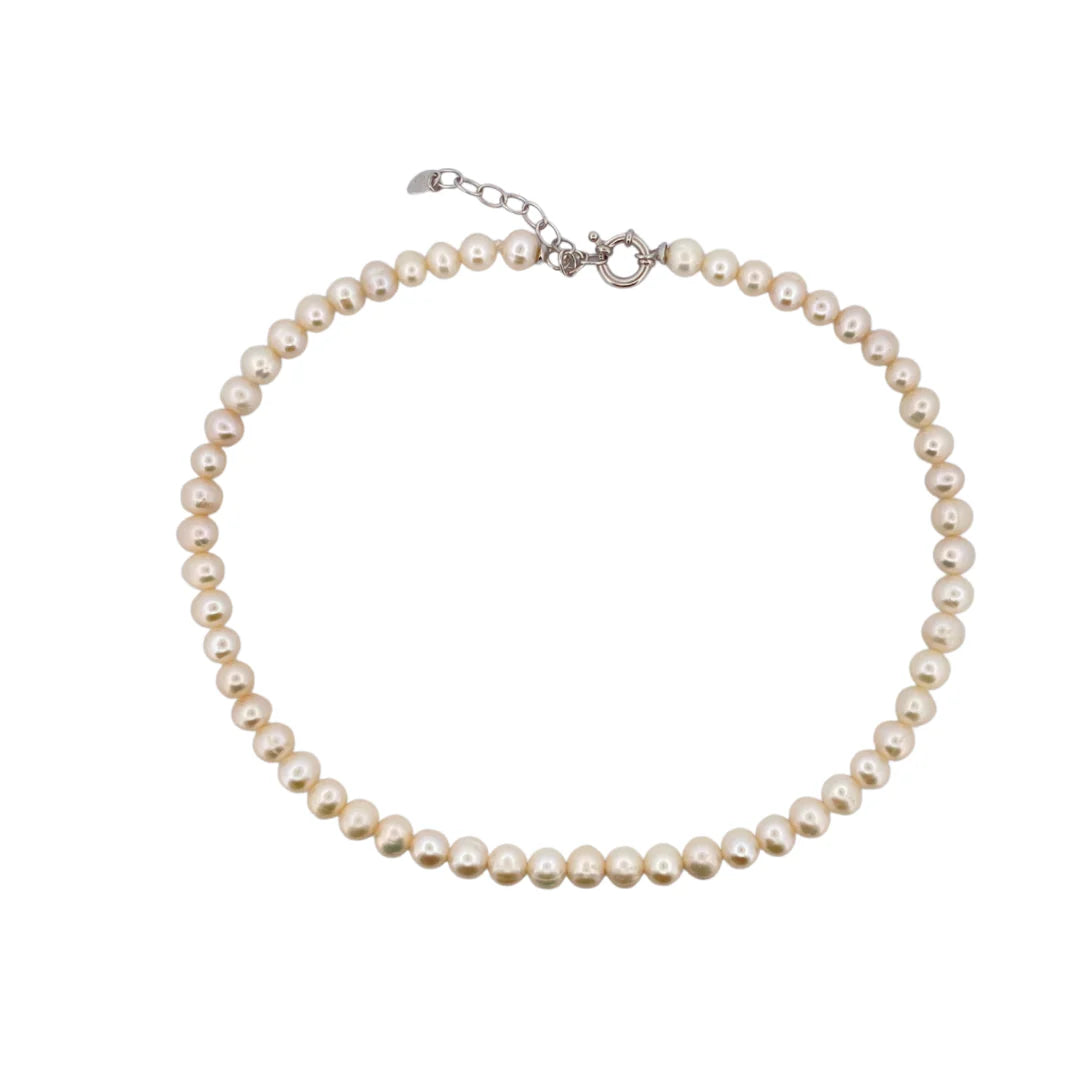 Colier din Argint 925 Rodiat Cu Perle Crem Naturale de Apa Dulce 6 mm