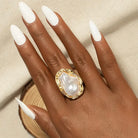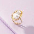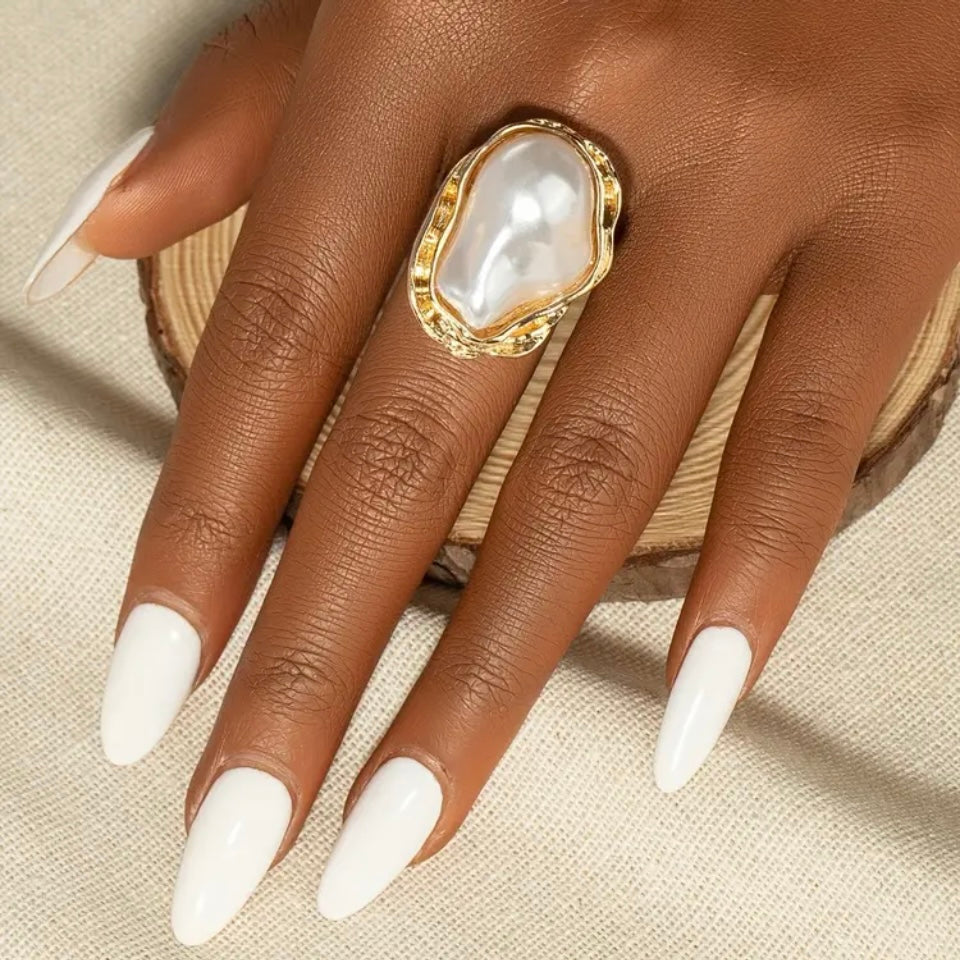 Adaugă un plus de rafinament ținutelor tale cu inelul Pearl Essence, o bijuterie statement ce îmbină strălucirea delicată a perlei sintetice cu eleganța metalului auriu. Acest inel este alegerea perfectă pentru femeile care iubesc accesoriile sofisticate și atemporale.