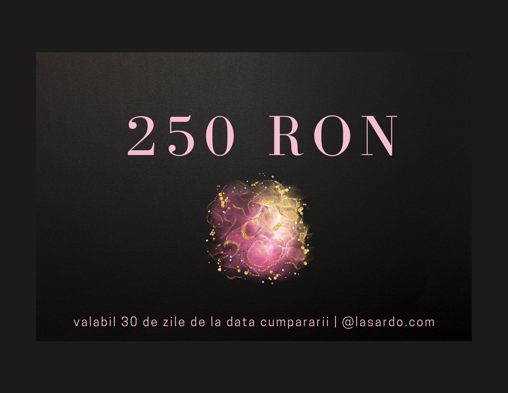 Poti alege unul sau mai multe Carduri Cadou cu o valoare intre 100 si 1 000 lei. Livrarea se face rapid, pe email, iar destinatarul poate cumpara orice de pe Lasardo Gioielli. Cardul Cadou poate fi aplicat, sub forma de reducere, pe o singură comandă de la Lasardo Gioielli, valoarea sa fiind scăzuta din totalul comenzii. Odata cumparat, Cardul Cadou e valabil 30 zile. In plus, nu exista nicio taxa de emitere sau rascumparare - cat platesti atat primeste destinatarul. Prin completarea datelor tale in formularul de solicitare a cardului cadou Lasardo Gioielli, accepti ca numele, mesajul tau si cardul cadou sa fie atasate contului tau de client si imputernicesti Lasardo Gioielli sa le transmita destinatarului sub forma unui card cadou Lasardo Gioielli personalizat.